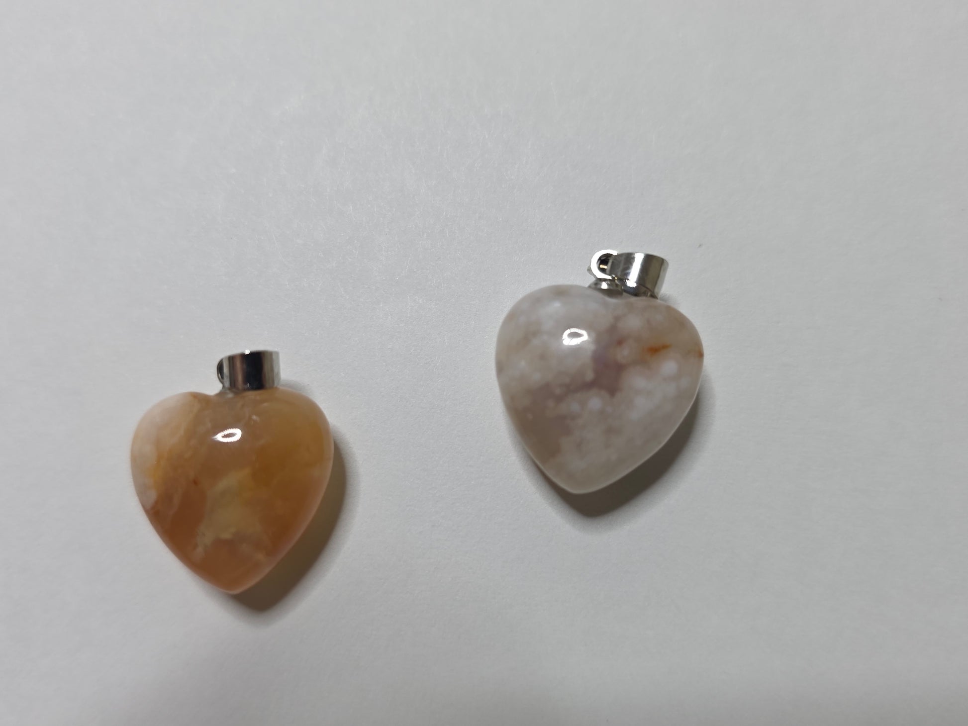 Flower agate small heart pendant with stainless steel chain. Random pick