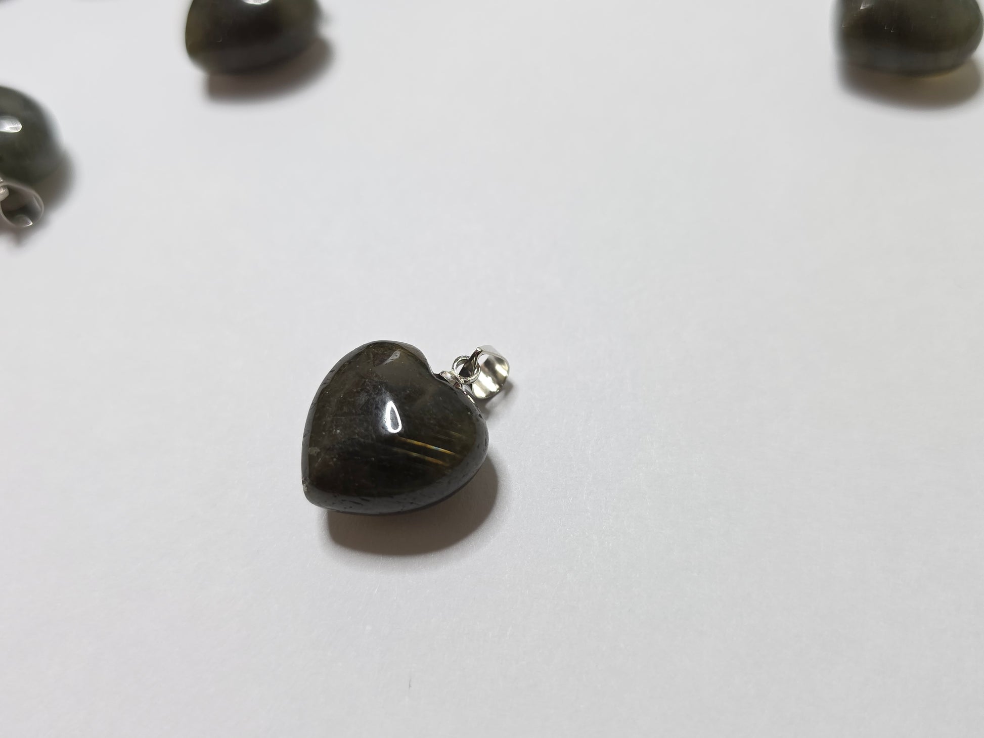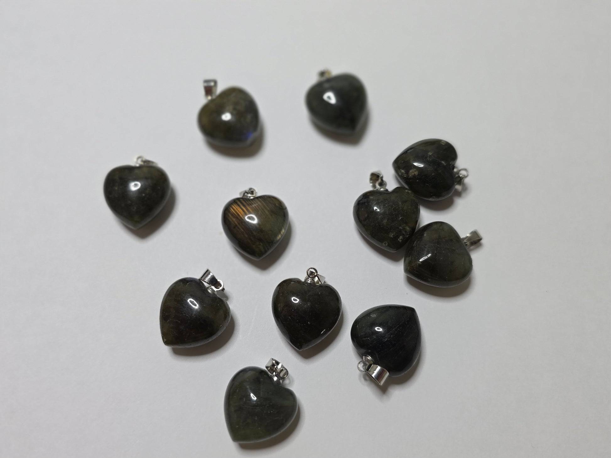 Labradorite small heart pendant with stainless steel chain. Random pick