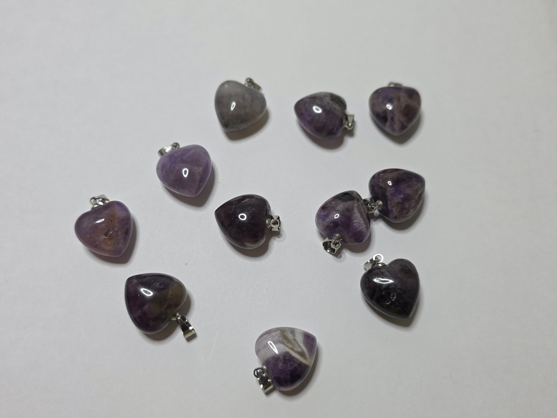 Amethyst small heart pendant with stainless steel chain. Random pick
