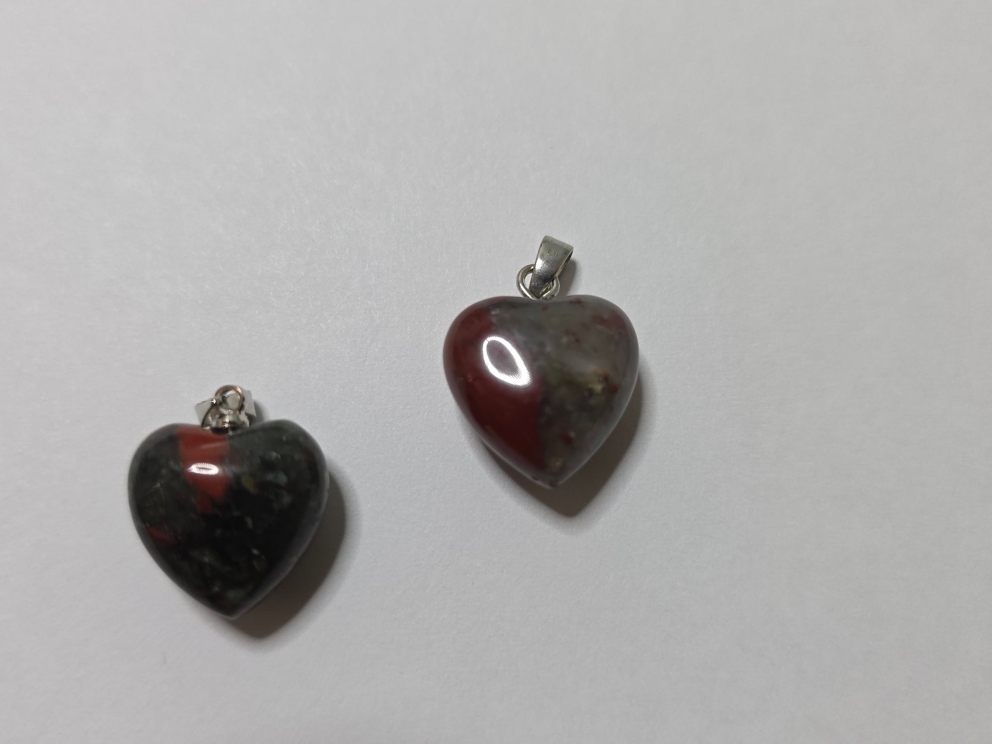 African blood stone small heart pendant with stainless steel chain. Random pick