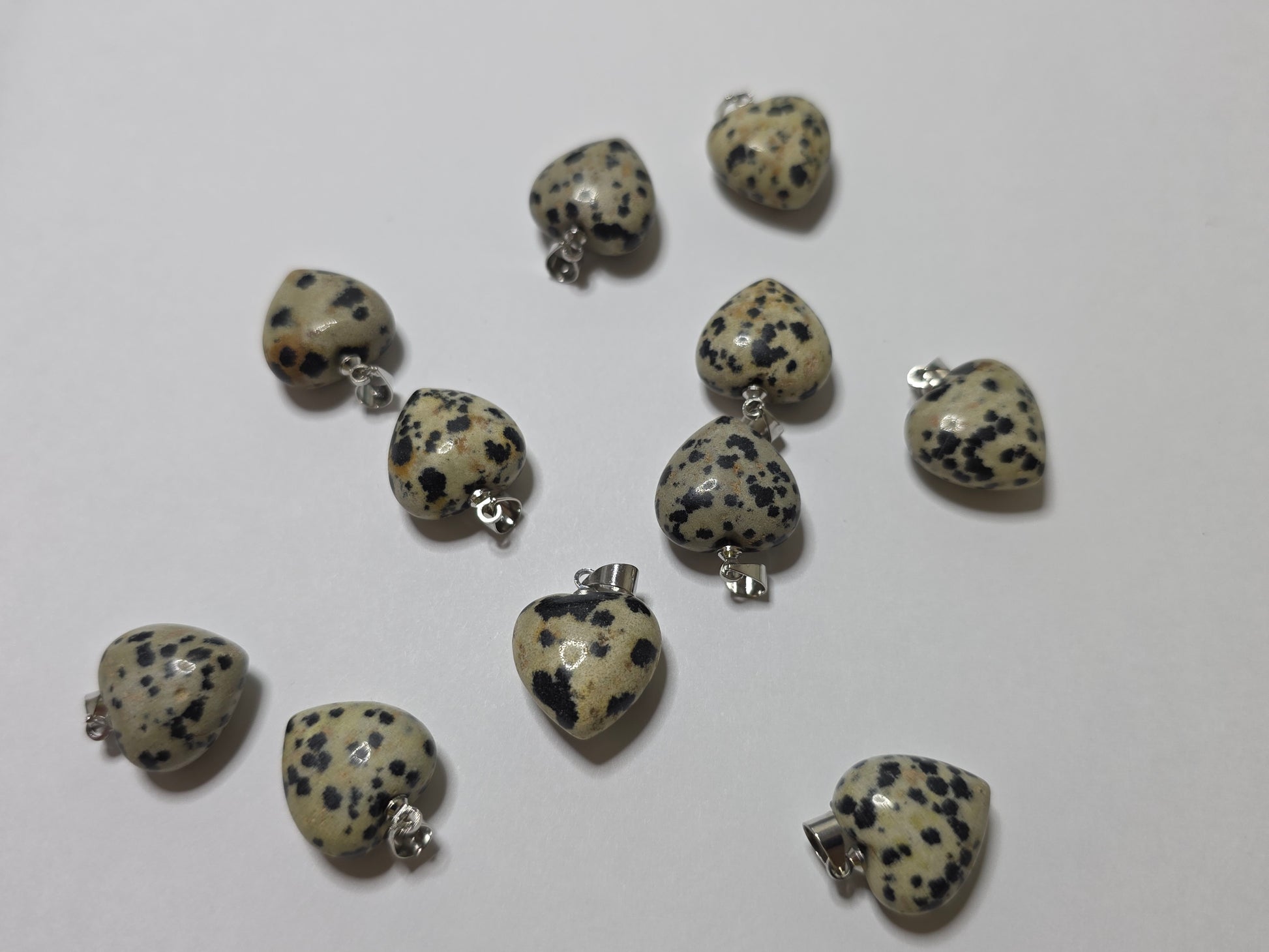 Dalmatian jasper small heart pendant with stainless steel chain. Random pick