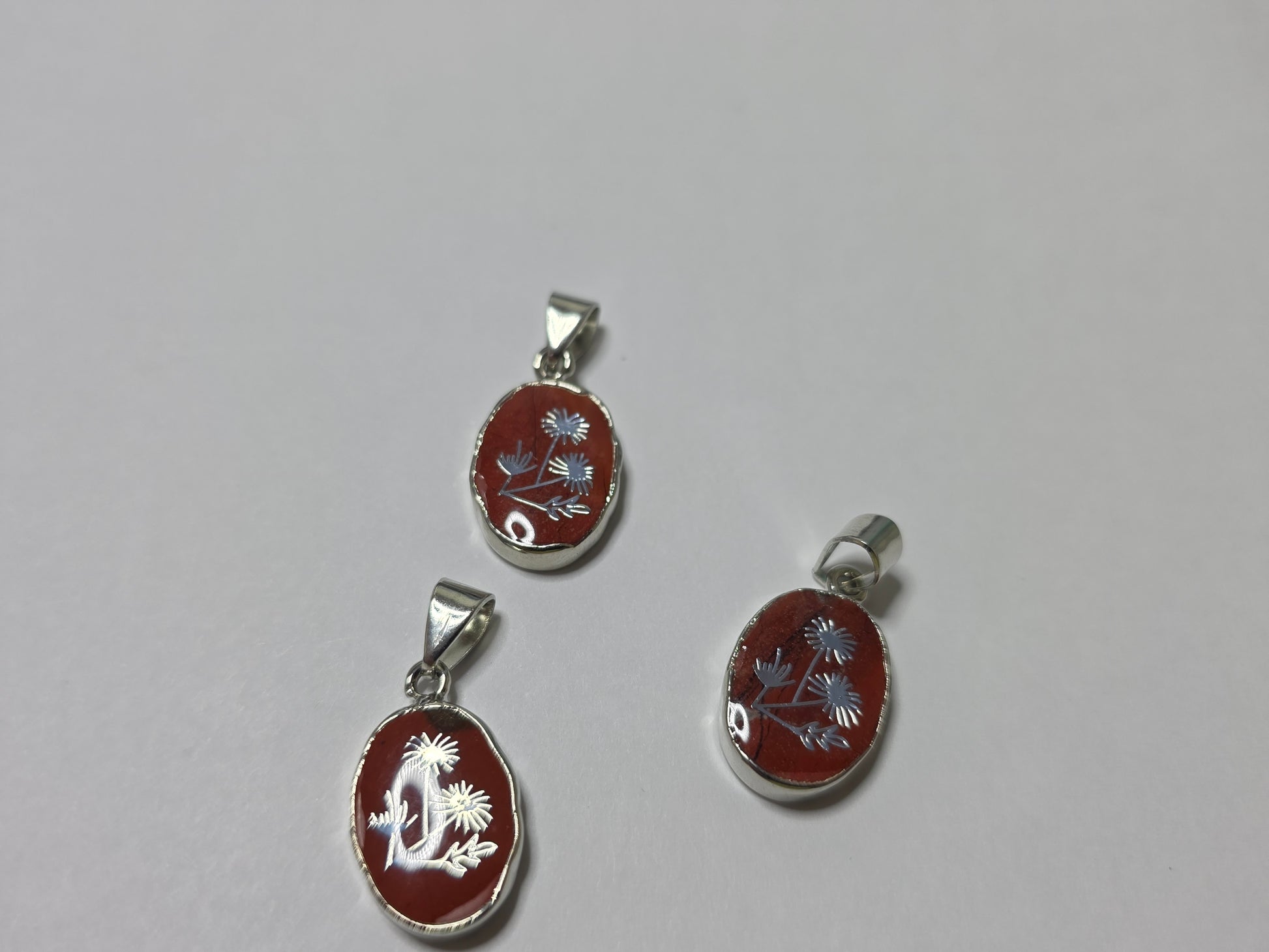 Red jasper stone with flowers. Comes with a stainless steel chain