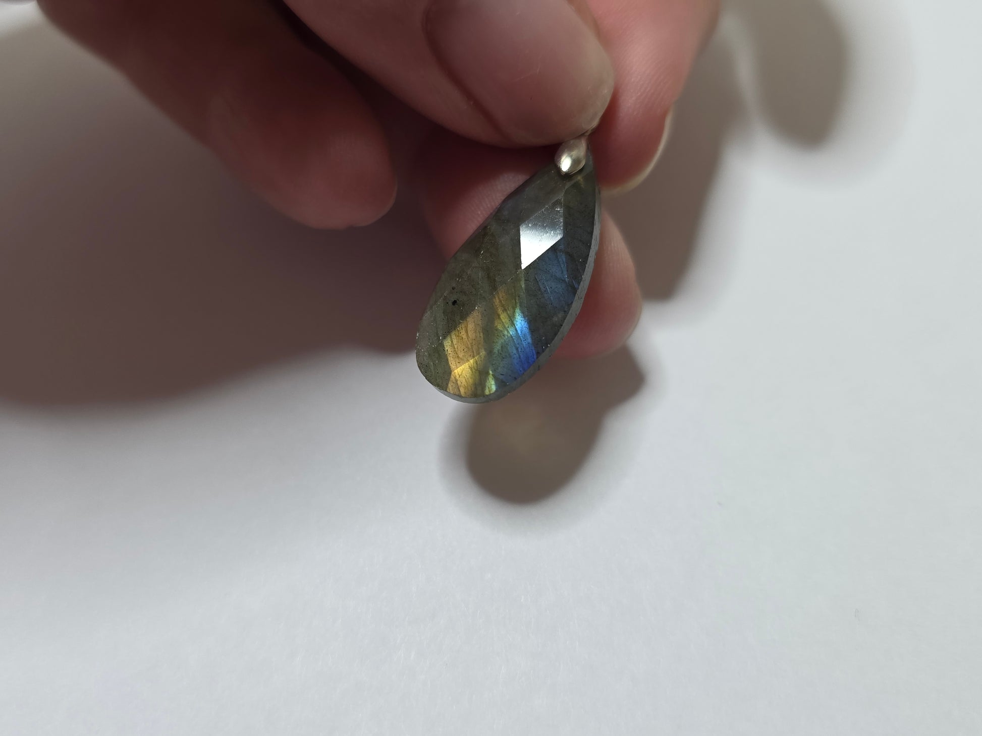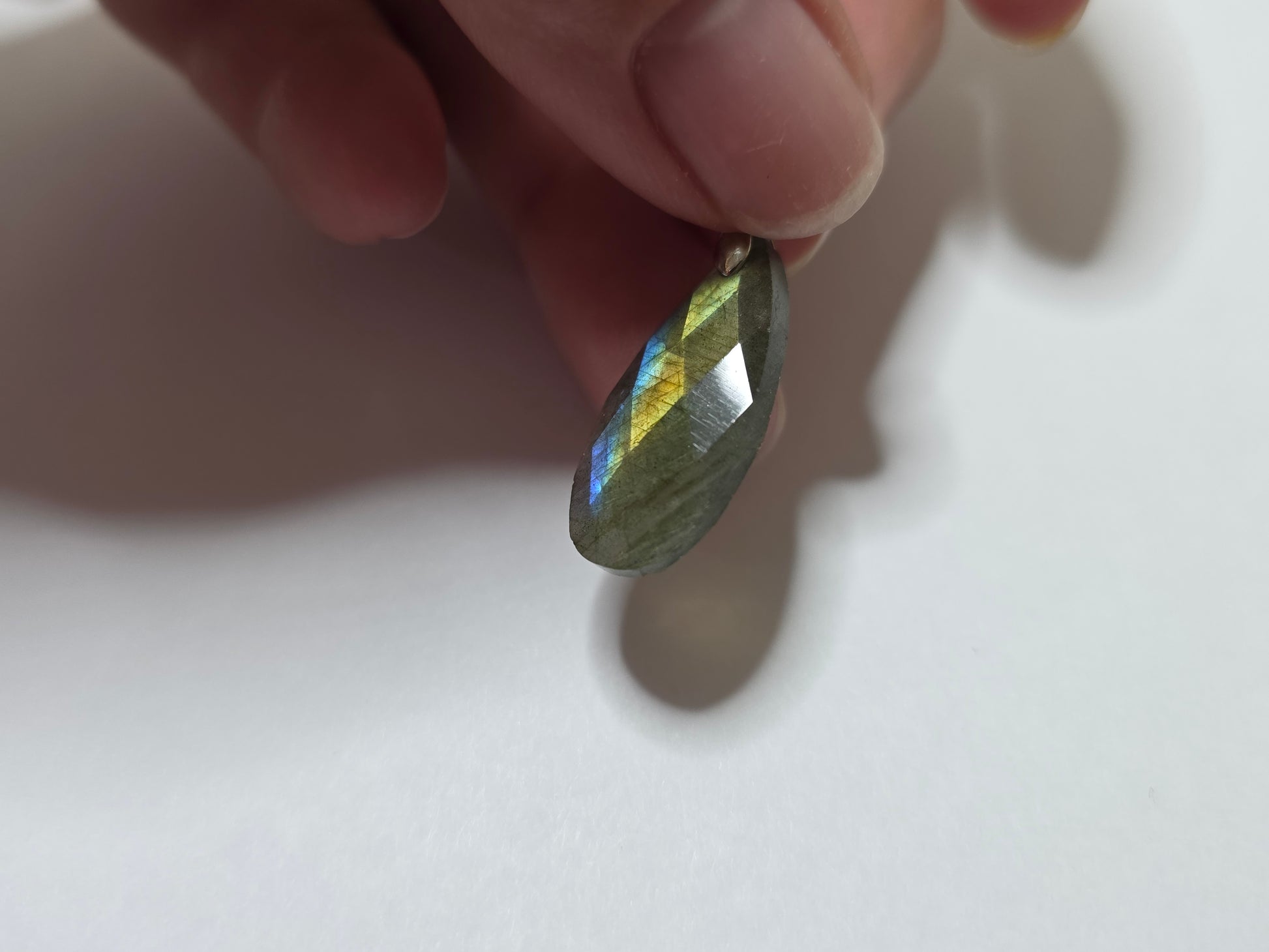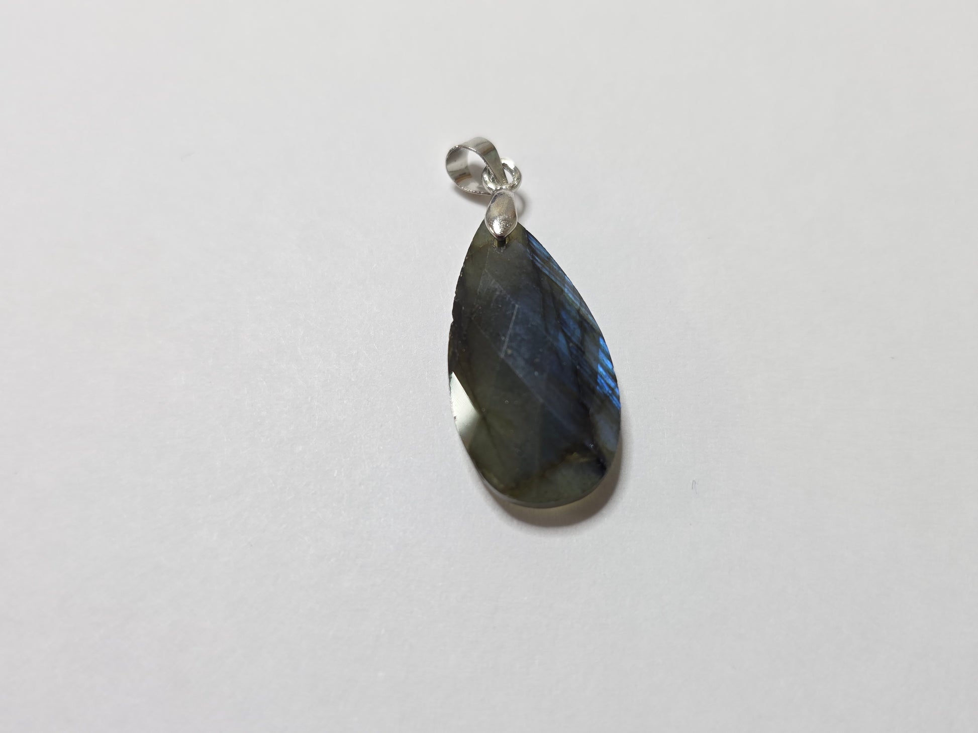 Flashy labradorite faceted pendant. Comes with a stainless steel chain