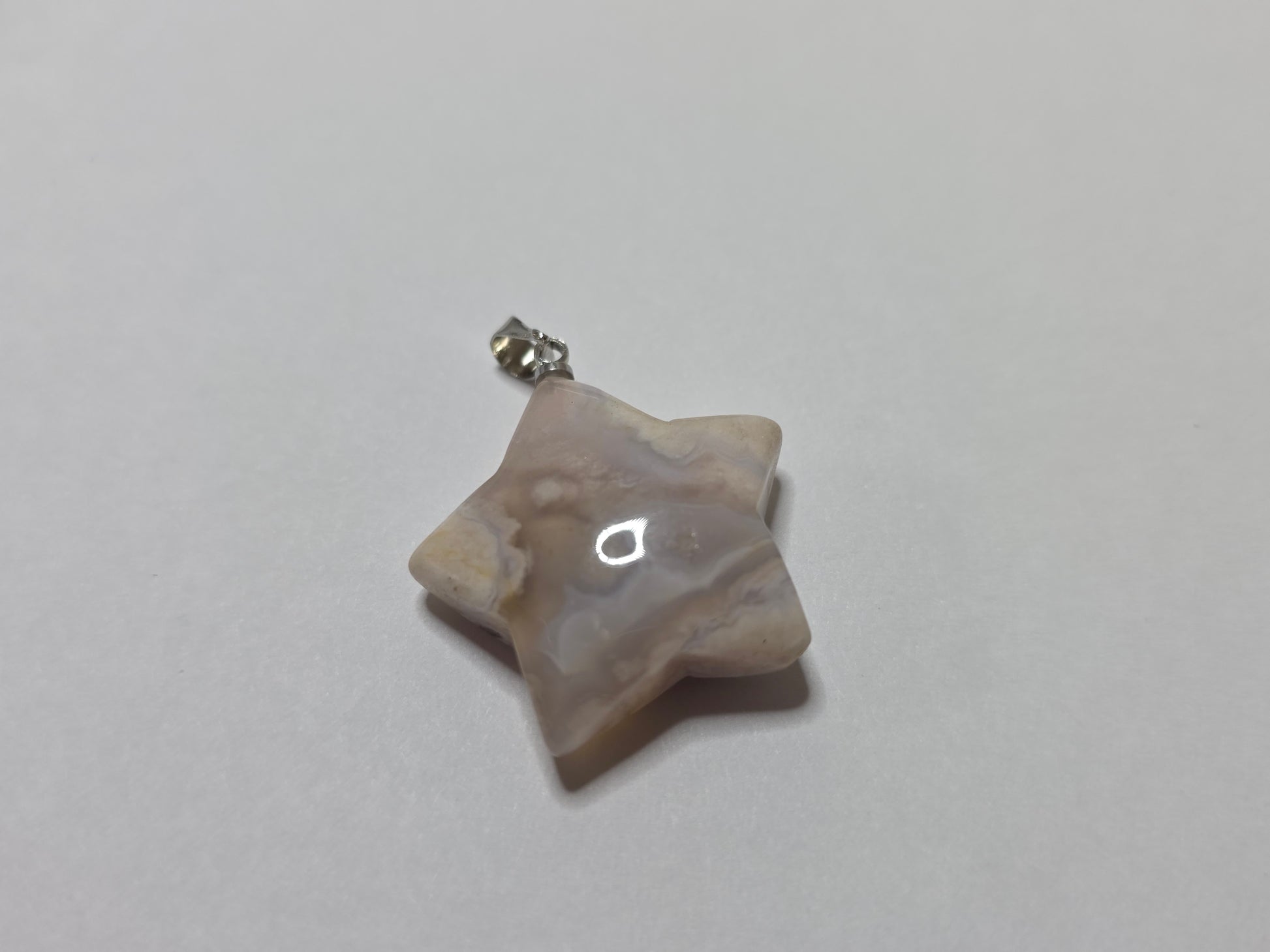Star flower agate pendant. Comes with a stainless steel chain