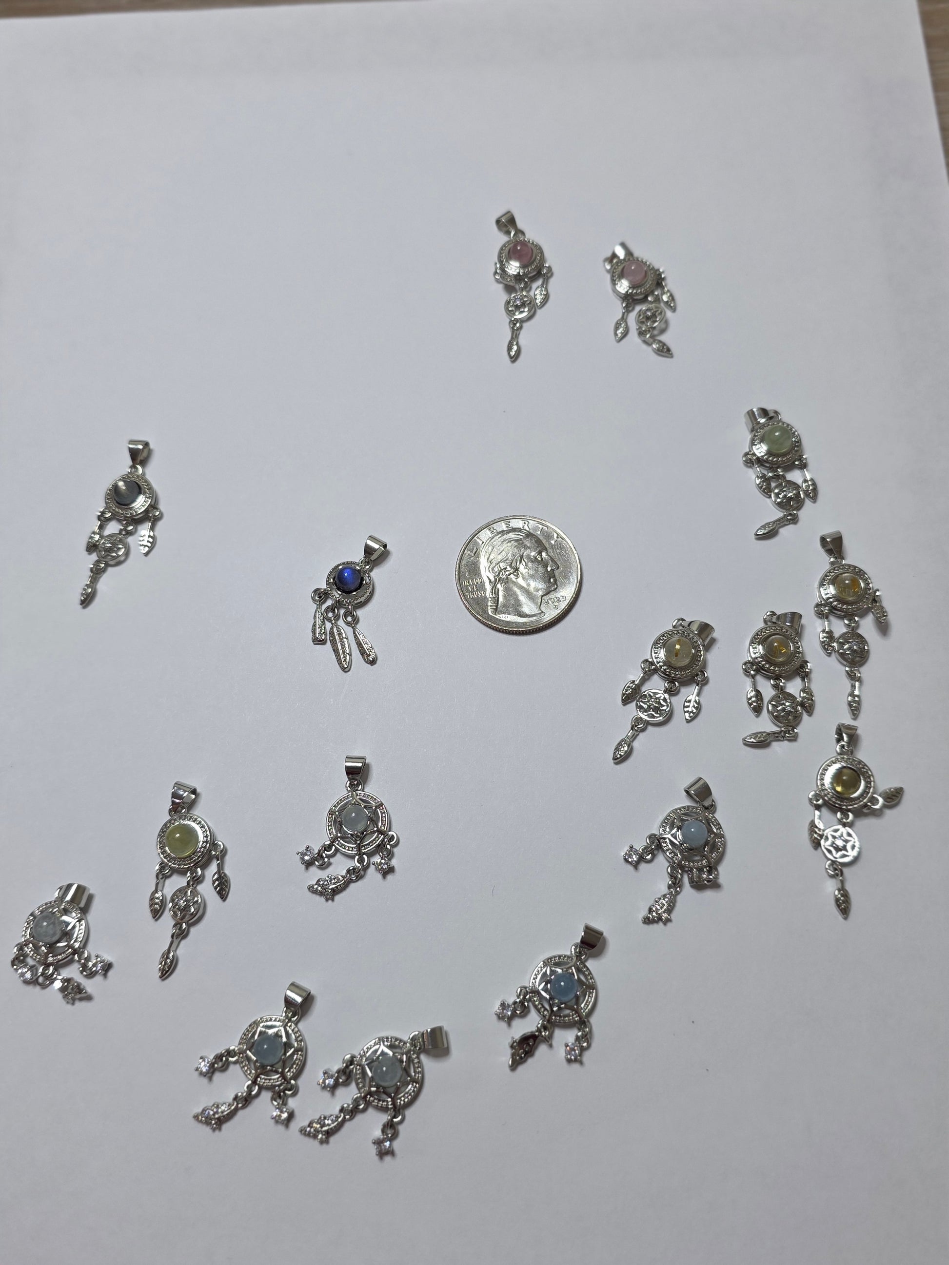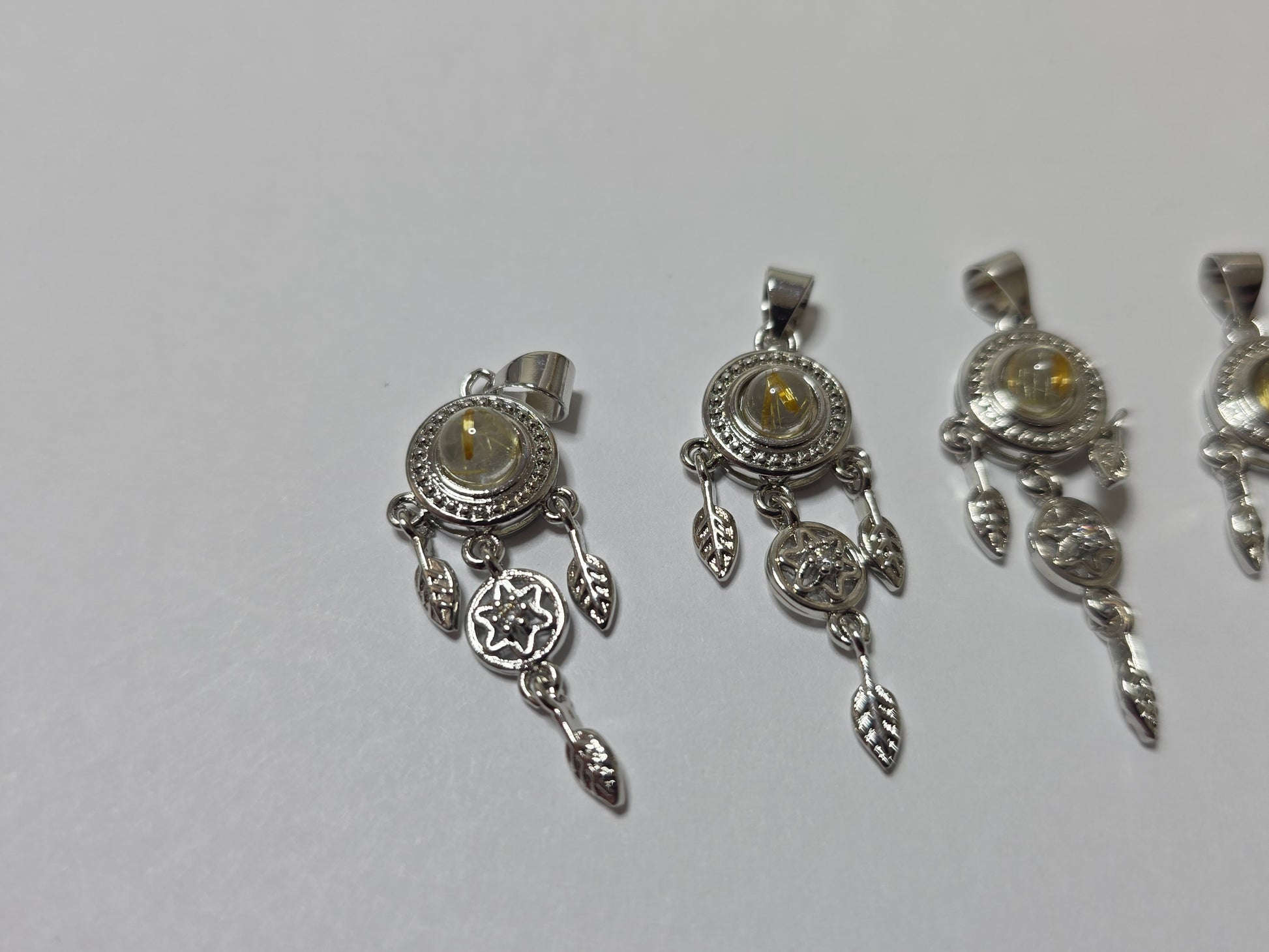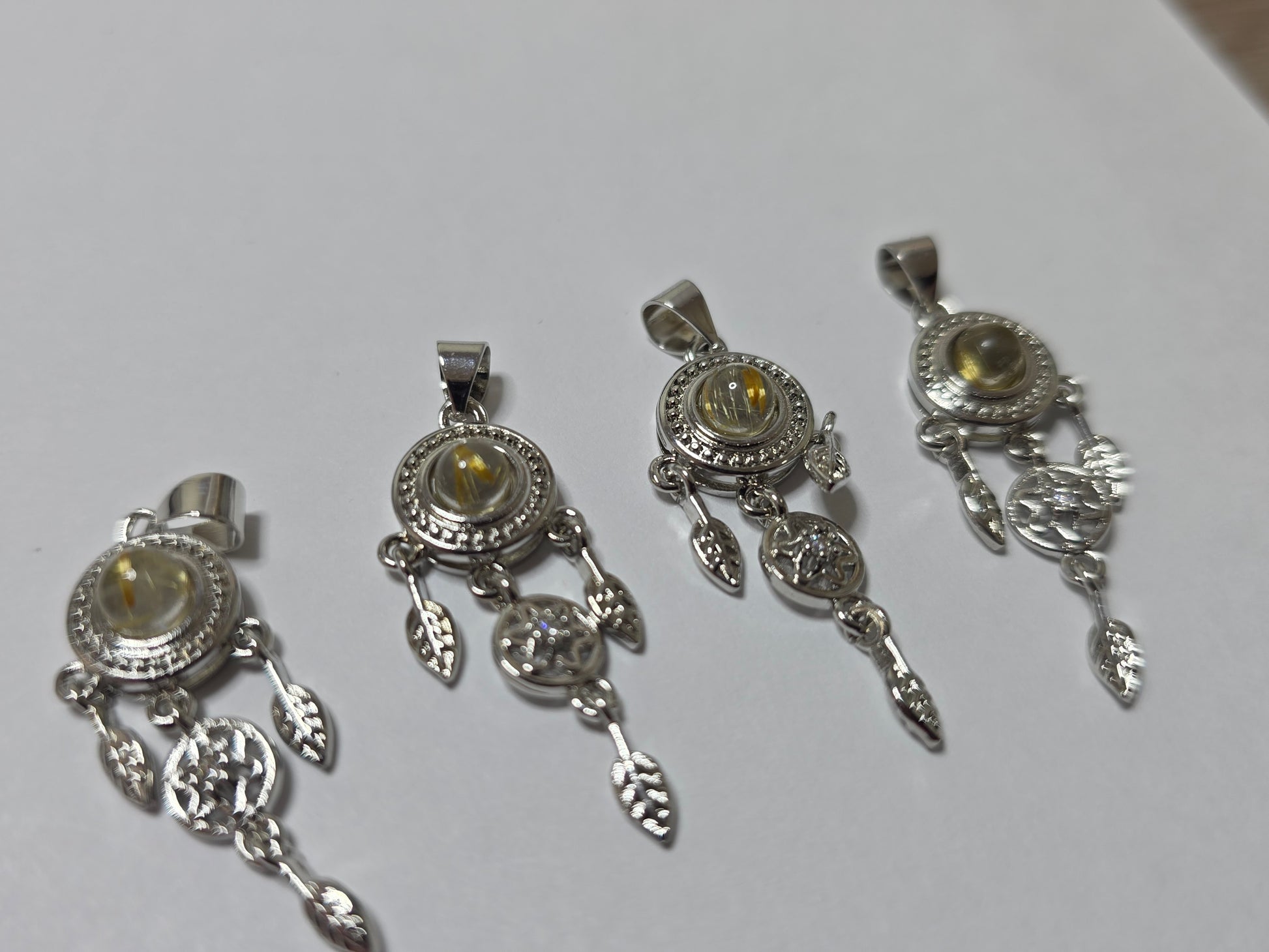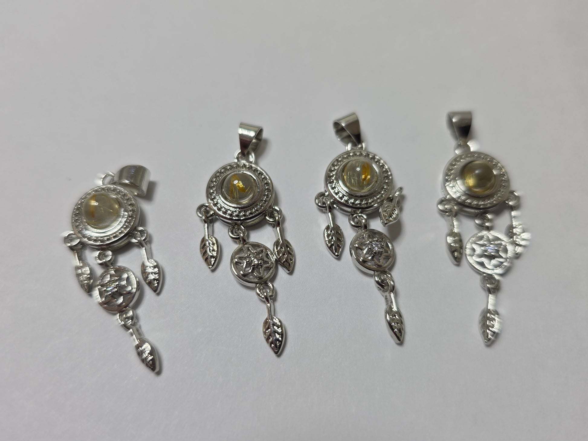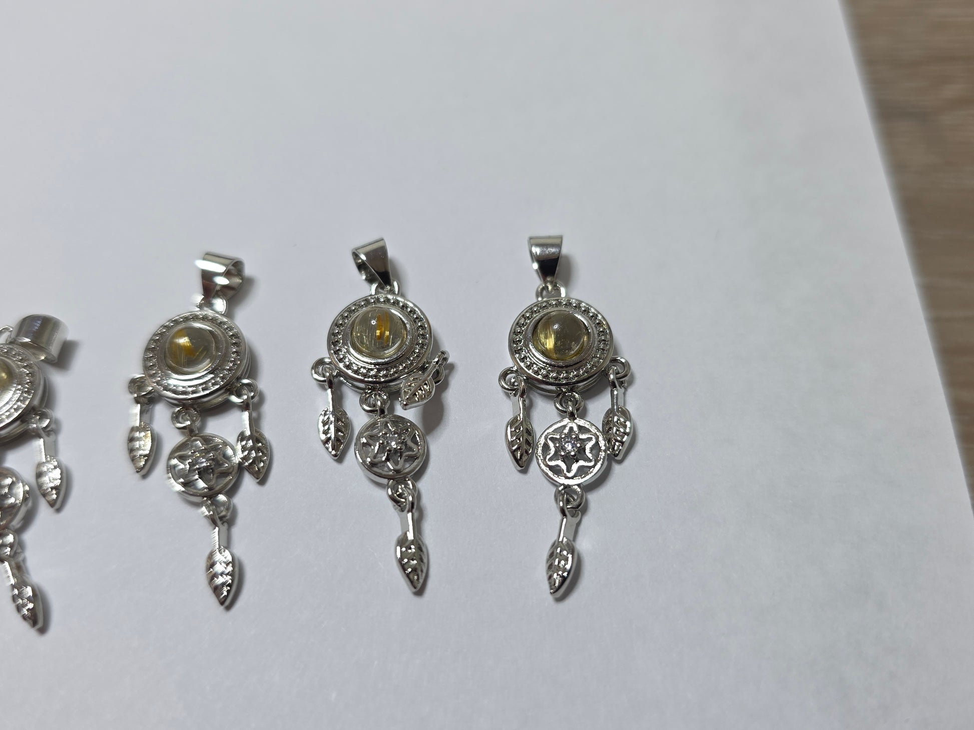 Small golden rutile dream catcher pendant. Comes with a stainless steel chain