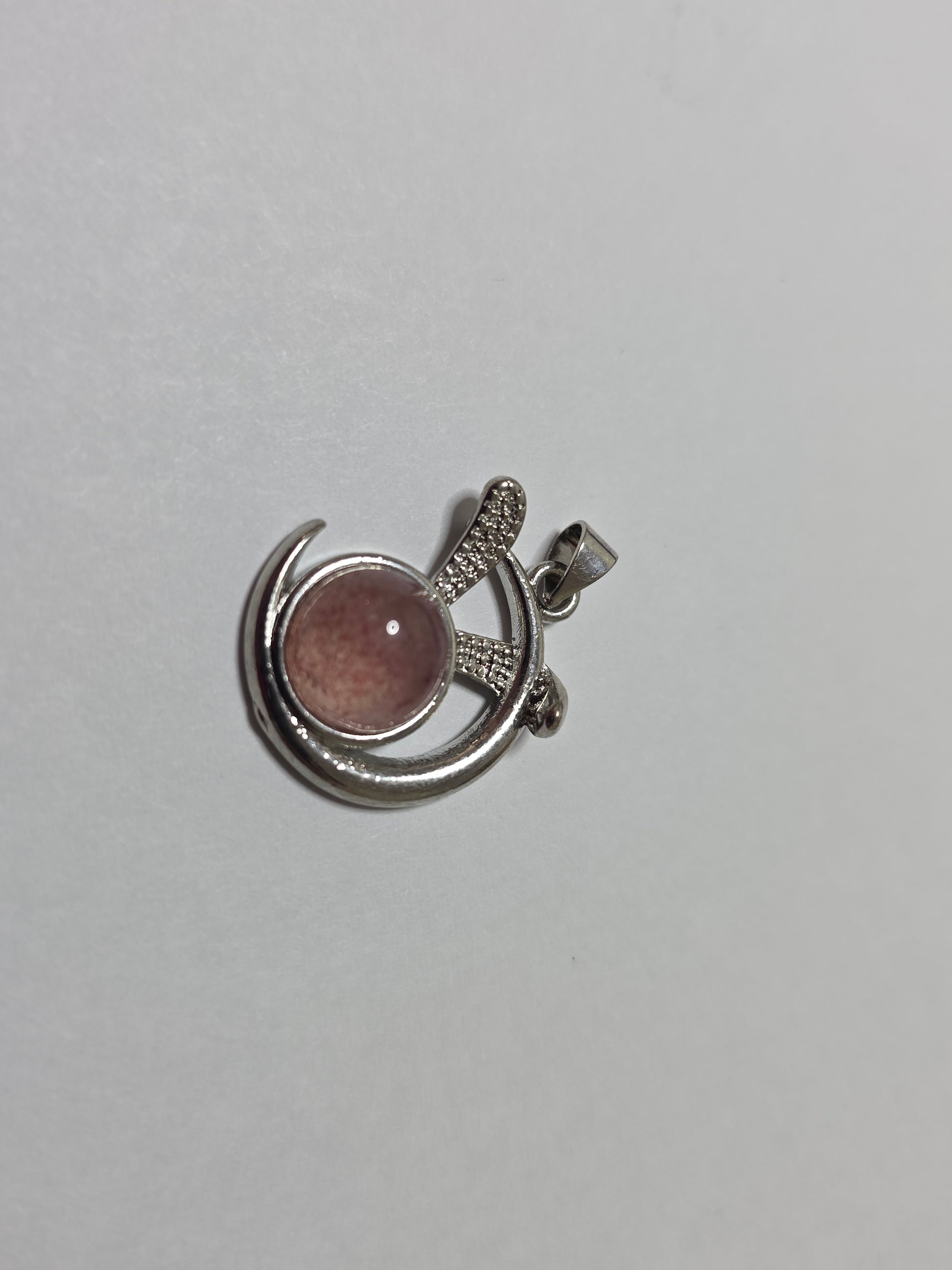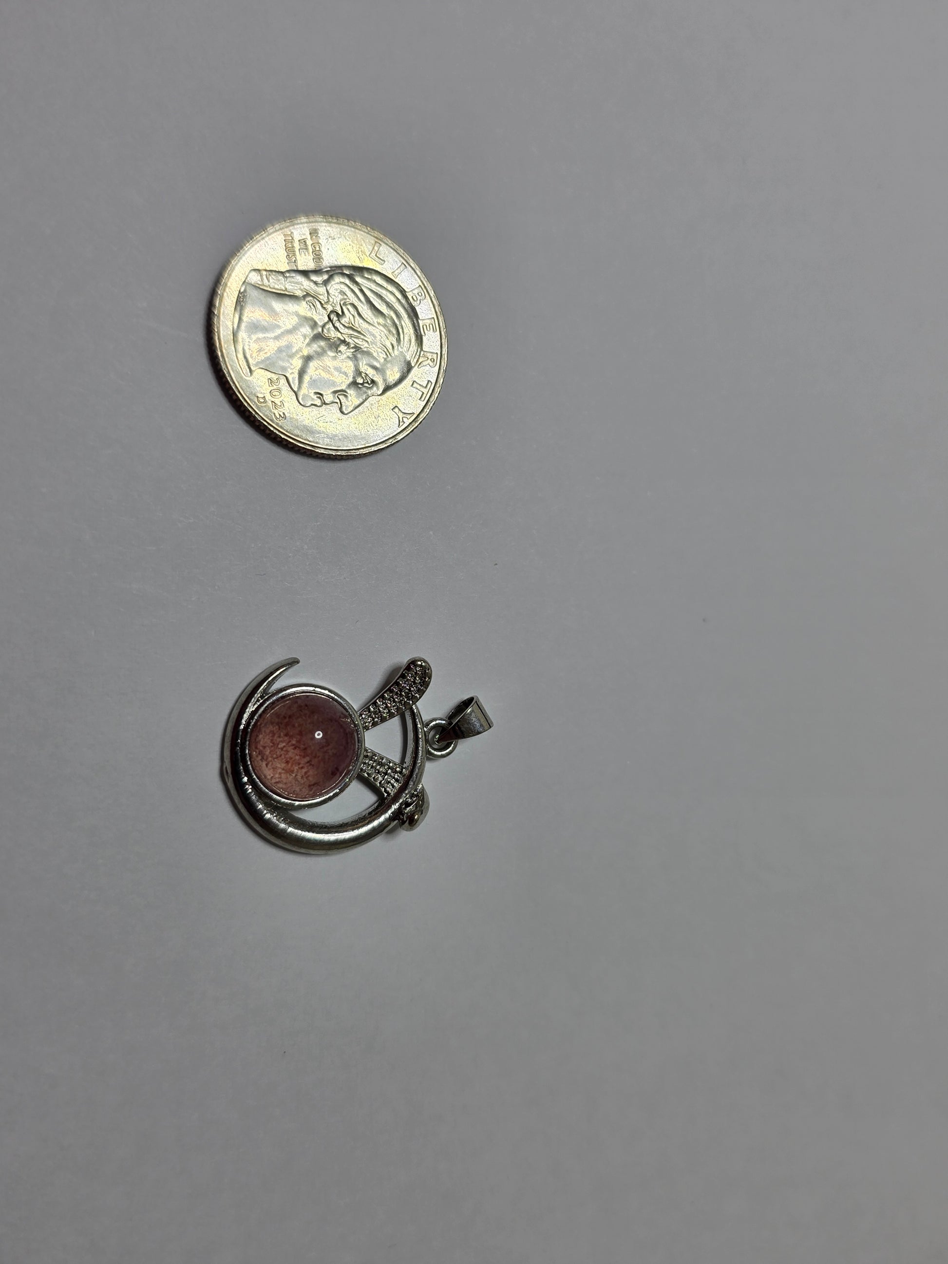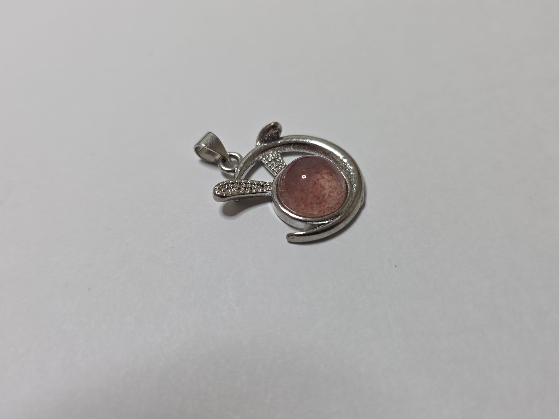 Strawberry quartz bunny/moon pendant. Comes with a stainless steel chain.