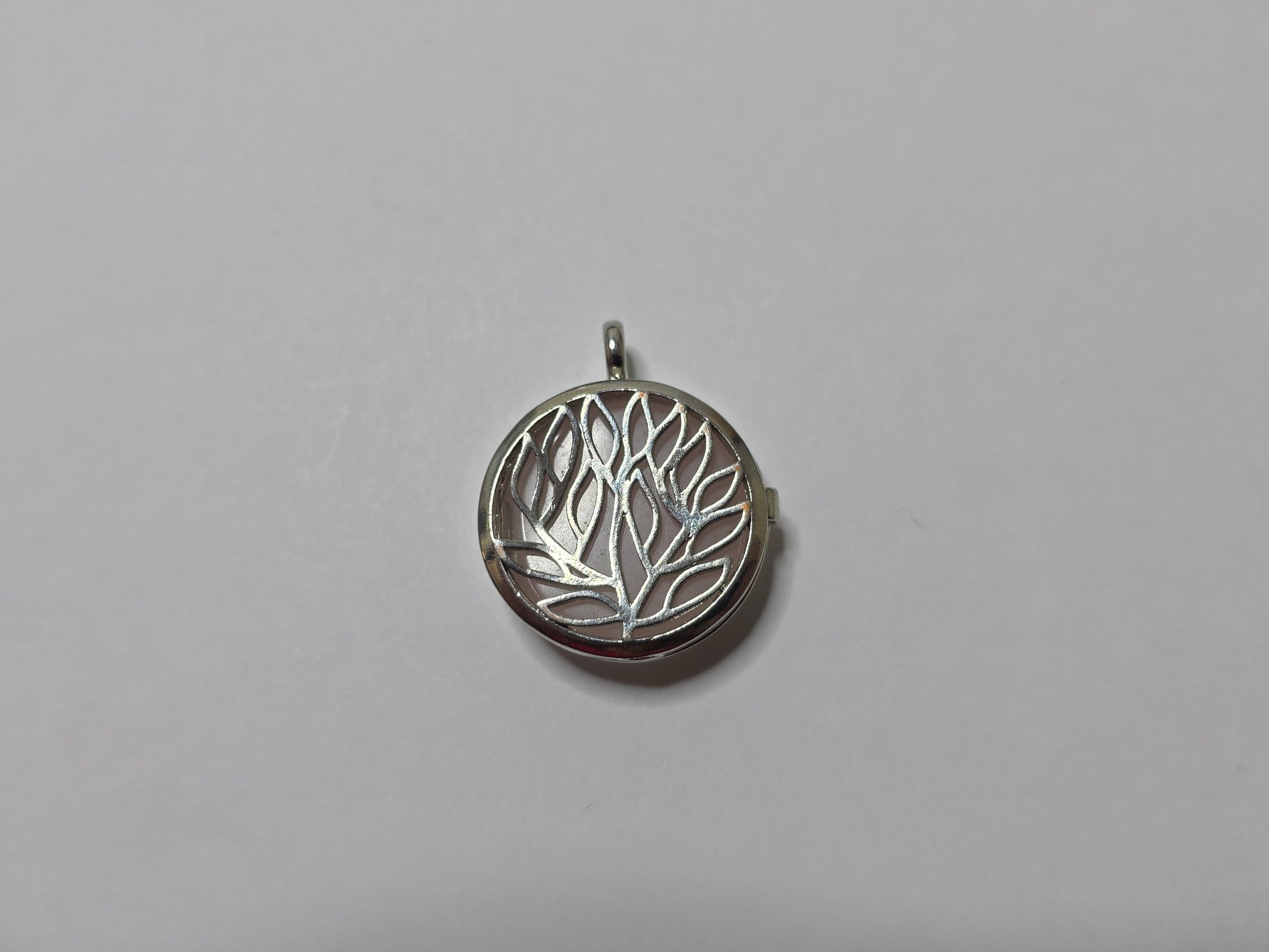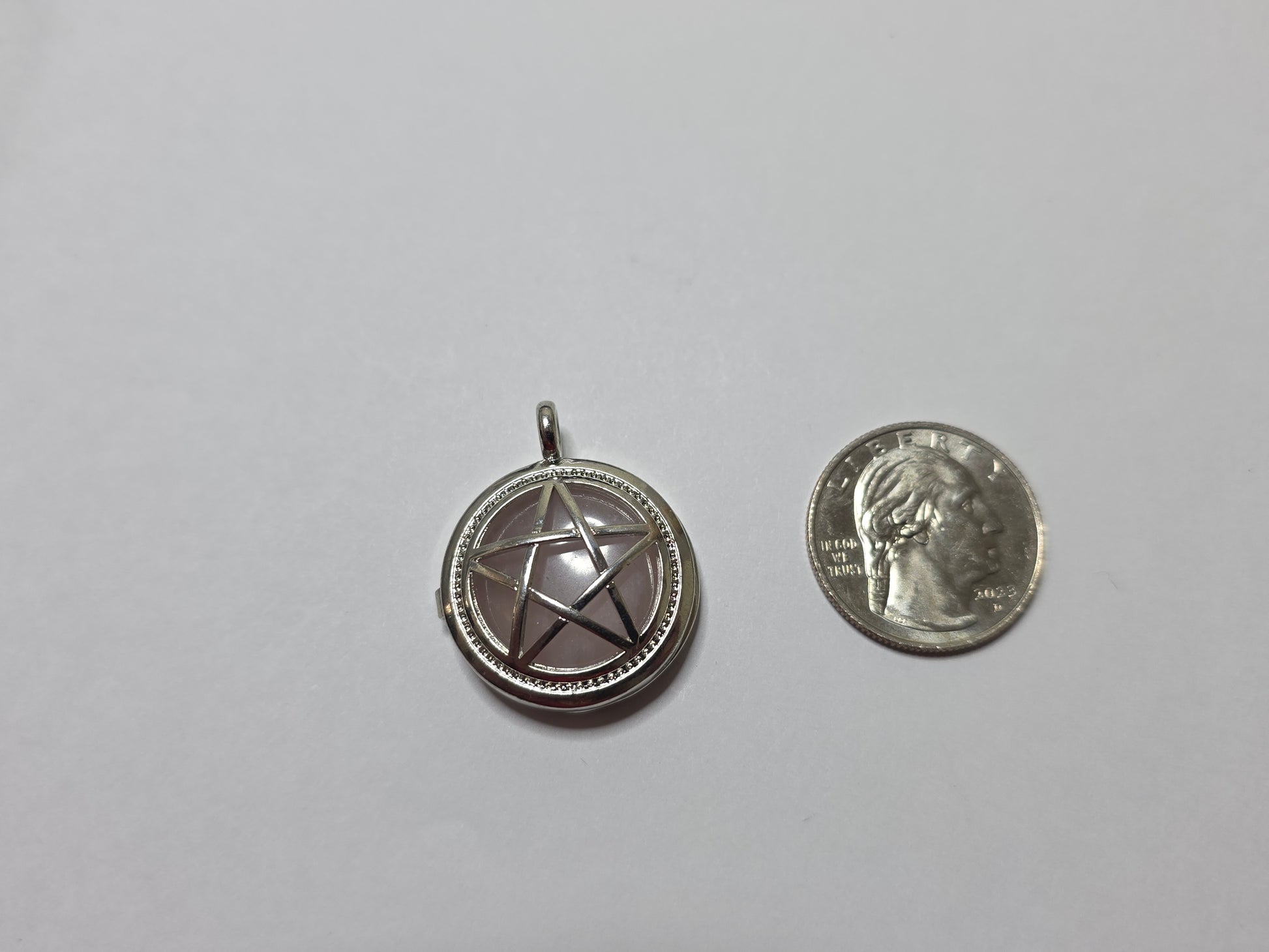 Rose quartz pendant. Comes with a stainless steel chain. The "locket" does not open.