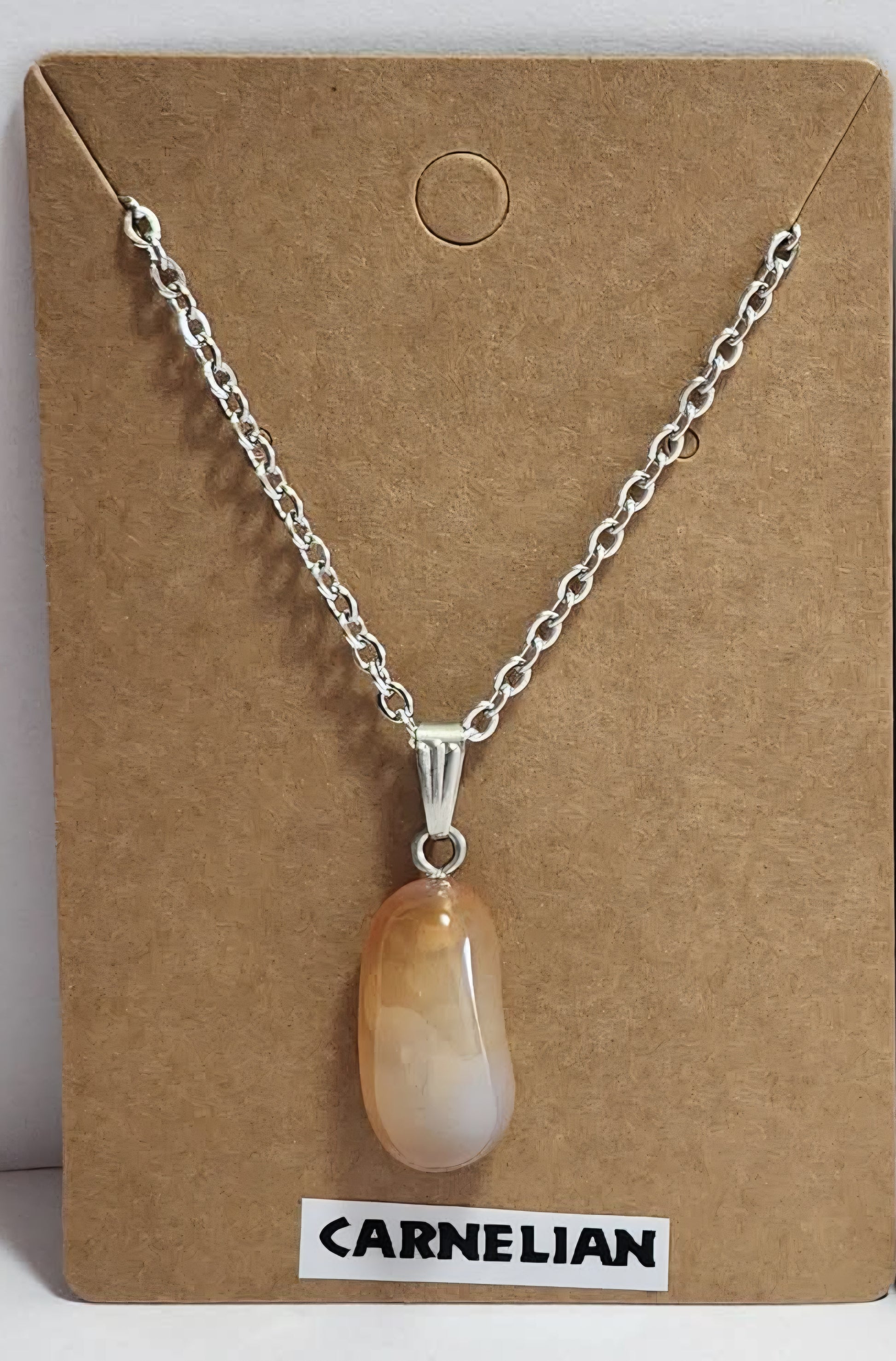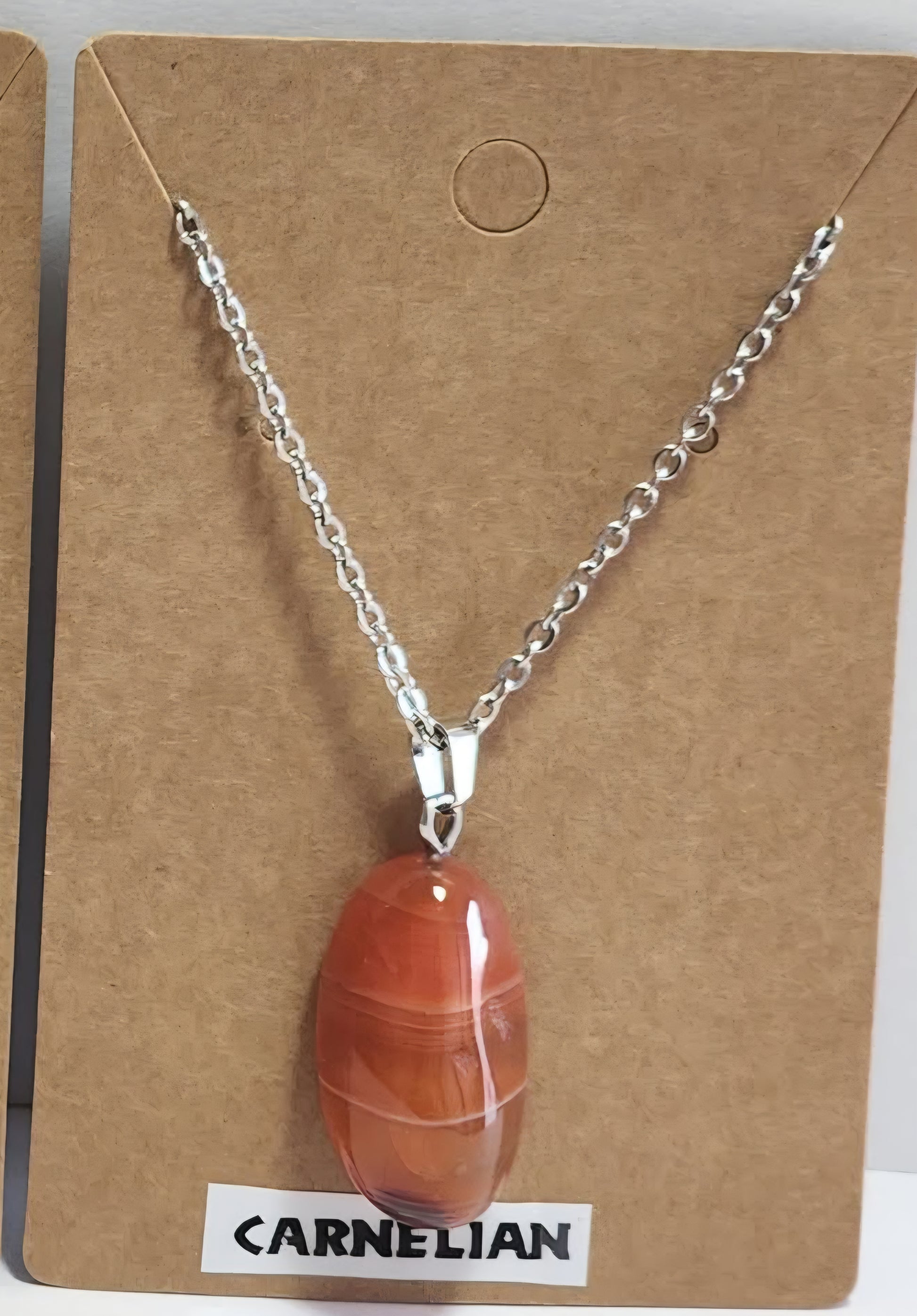 Carnelian tumble pendant with 24" stainless steel chain. Random pick