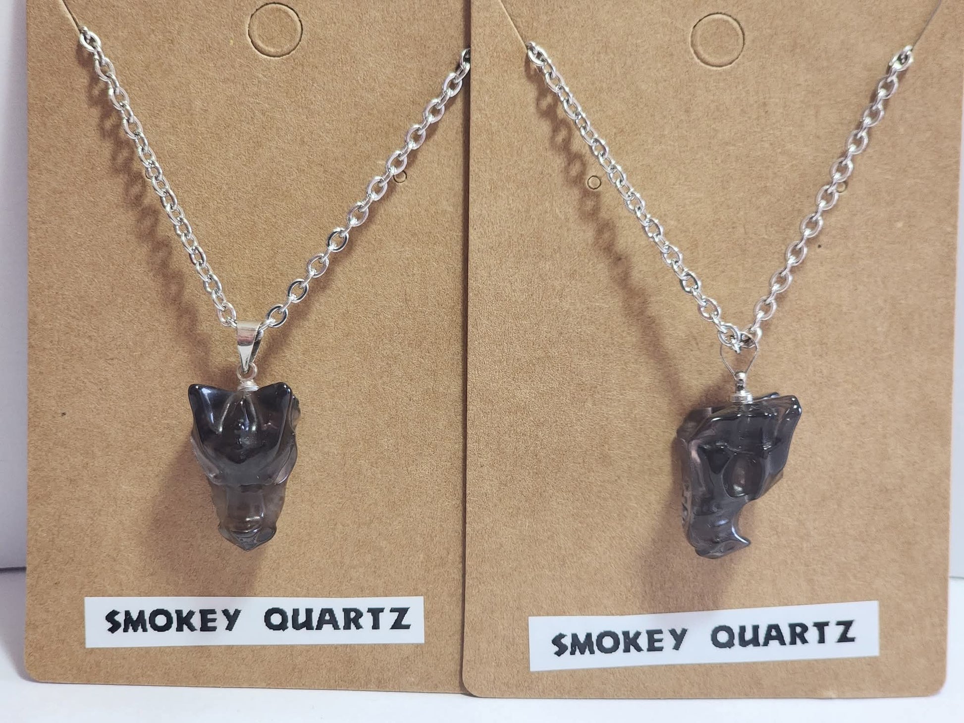 Smokey quartz dragon head pendant with 24" stainless steel chain.